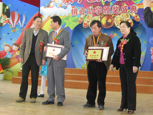 4月7日,由琅岐经济区管委会主办的“家乡因你而美丽”捐资助学颁奖典礼在吴庄华侨小学隆重举行,表彰带头慷慨捐资吴庄华侨小学建设的林清华先生、林清武先生、林良顺先生、林善举先生等四位华侨代表。省侨办俞泓斌处长和市侨办李锋主任代表福建省人民政府为他们授牌匾及荣誉证书。