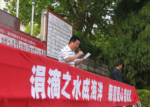 “心系玉树,抗震救灾”,琅岐经济区关工委副主任朱立仪和琅岐中学副校长陈奋楷作了充满感情的讲话。他们说: