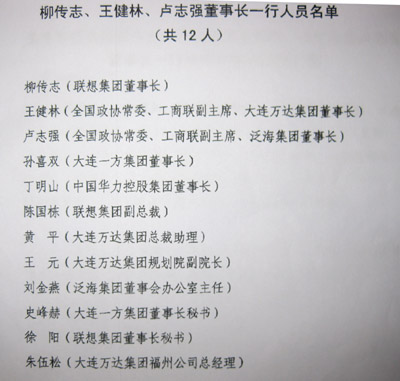 今天,联想集团董事长柳传志、万达集团董事长王健林、泛海集团董事长卢志强、一方集团董事长孙喜双、华力控股集团董事长丁明山等一行十二人,在福州市副市长时小雨、马尾区区长林新国和琅岐经济区高洪霖书记的陪同下,莅临琅岐岛视察,他们对琅岐岛——这块未开发的处 女地颇感兴趣!