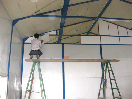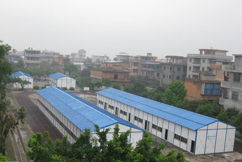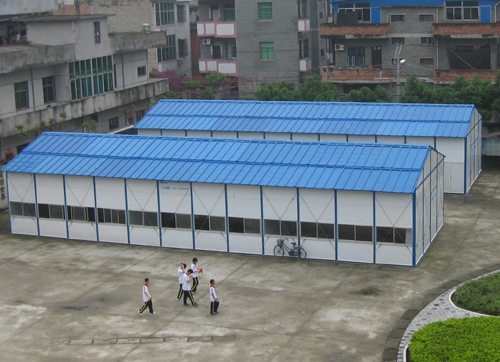 琅岐实验小学有两座教学楼,每座均为三层,12间教室,2间办公室,经有关部门检测,属于”D”级危房。为保障师生安全,决定拆除重建。目前在学校的大操场已经建好6座临时活动房,其中四座每三间教室;两座每6间教室。这样,活动房共计24间教室,将作为原教学楼拆除重建的过渡性教室。这些临时教室每间54平方米,两门四窗户,采光还好,均装有日光灯、电风扇等,是福建榕东活动房有限股份公司负责搭建的。据说这样的二十四间临时教室,每年租金高达十四多万元。
