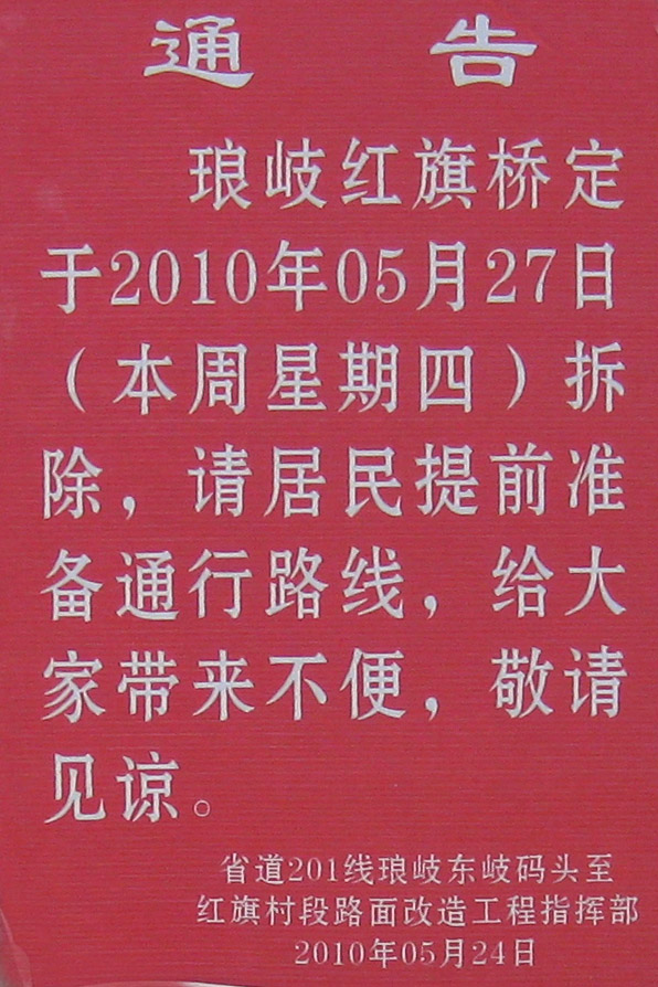 下岐环岛至轮渡码头路面改造已经全面启动,红旗桥拆除重建,车辆请绕道通行。