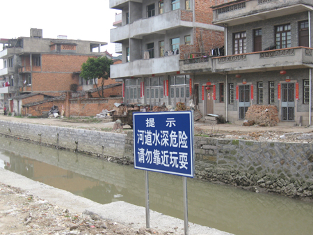 河浦边警示牌