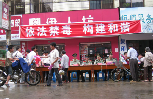 毒 品是白色瘟疫,毒 品是万恶之源。毒 品不除,国无宁日,家无宁日。为了遏制毒 品问题的滋长,琅岐经济区近年来在全区开展禁毒人民战争,坚决打击各类毒 品犯罪活动,取得较大成效,为构建和谐社会作出贡献。为了进一步促进琅岐地区安定稳定,扫除丑恶的社会现象(毒、.赌、.黄等),迎接琅岐大开发大发展,琅岐经济区社会事务和综治办、琅岐边防所、海云边防所、琅岐法院等单位,6月25日联合举办“依法禁毒,构建和谐”大型禁毒宣传活动。活动运用大量展板,用许多触目惊心的案例,展示毒 品的危害,引起许多群众驻足观看。活动还向群众分发《致全区居民一封信》,号召广大人民群众响应党和政府的号召,积极参与禁毒斗争,为构建和谐社会贡献力量。