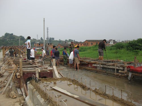 201省道琅岐段(新道码头至下岐环岛)修建,红旗桥是重点难点工程。前段因多天强降雨,造成施工困难。现在建桥工人冒着酷暑,在保证质量的前提下,赶时间抢速度,9个墩位已经全部浇灌完毕,目前赶制桥承台和空心横梁。“红旗桥建成,整个道路工程建设也就快了。”工程负责人这样说。