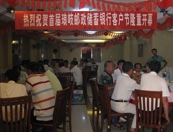 琅岐邮政储蓄银行客户节开幕,将与广大顾客形成互动,开展业务咨询,进行诚信服务。
