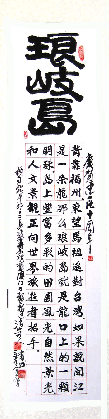 为庆祝琅岐经济区成立十周年,展示琅岐近年来经济、社会发展成果,和即将动工建设的重大项目,勾画琅岐岛未来的美好画卷,激发人们热爱家乡,迎接大开发大建设的激情,琅岐经济区在董氏宗祠举办书画摄影展览。展品内容丰富,形式各异;观赏者络绎不绝,大家齐声赞扬改革开放给琅岐到来的巨大变化,对琅岐的未来发展充满信心,八十五岁的董老伯说:“福州是有福之州,琅岐是宝玉之岛,真是福玉满堂。”
