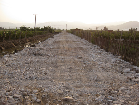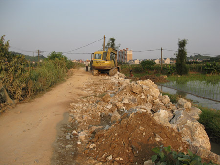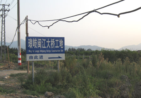 目前,建桥已经进入了前期准备的实质性阶段,笔者看到在红光村至江边(设计中大桥琅岐端点)的通道正在拓宽。这条通道长1560米,村民称之为“垱路”,路面只有2米宽,是上世纪50年代建设的“车子路”。现在路面要拓宽为6米,是专为建设琅岐闽江大桥准备的便道。只要琅岐闽江大桥正式动工,浩浩荡荡的建桥大军,包含大量物资器械,将从这条便道通过,直达建桥工地。