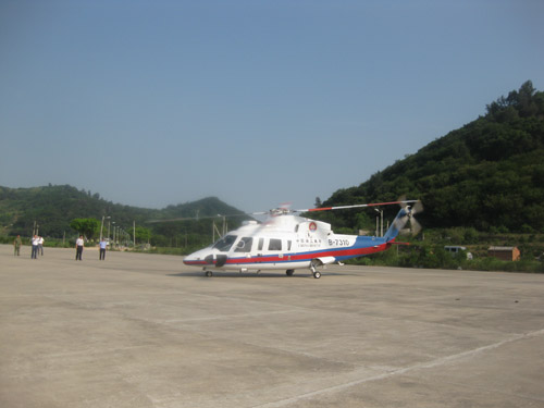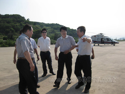 这架白色B_7310 直升机,3点05分从平潭岛起飞,载着交通部的领导和专家,从空中考察了琅岐闽江大桥建设地理位置之后,莅临琅岐做客。