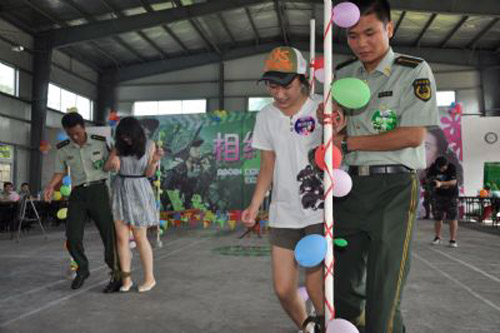 活动气氛十分热烈,威武潇洒的男官兵一出场,就以良好的精神面貌、特有的军人气质,吸引了来自众多不同单位姑娘的目光。浪漫的气氛、期待的目光、温馨的游戏派对,使本次“联谊会”现场始终洋溢着轻松、愉快、欢乐的气氛。