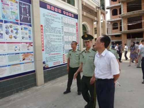 日前,省高级人民法院副院长何明带领省综治委调研督导组到马尾琅岐防派出所辖区进行调研。省综治委调研督导组一行在福州市、马尾区相关领导的陪同下,来到马尾琅岐边防派出所辖区吴庄华侨小学、琅岐镇红光爱民固边模范村进行实地调研,督导组一行查看了校园安保及该所开展爱民固边战略状况,听取了琅岐经济区相关领导的工作汇报。同时,调研督导组就校园安保、创建爱民固边模范经济区等工作进行了细致的了解,督导组对边防官兵在创建爱民固边模范经济区、警官兼任村官等工作中所取得的成效给予肯定。期间,琅岐边防良好的警容警姿和精神面貌给督导组留下了良好的形象。