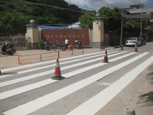 通往过屿村的道路车流量很多,琅岐实验小学校门口紧临大道,为了保障小学生和接送家长的安全,在新学年开始之际,琅岐公安分局交管大队在琅岐实验小学校门前道路增设减速带与斑马线。这是维护交通安全的好举措,是关爱生命旅途的安全线,“居安思危危自少 有备无患患可除”,为了你我他,希望大家共同遵守交通法规。