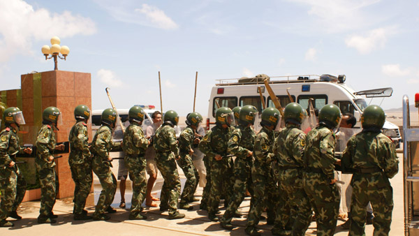 担任处突防暴任务的执勤官兵紧急出动