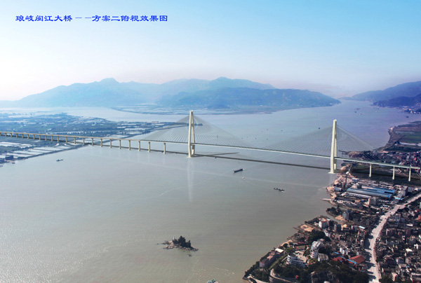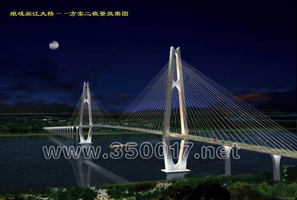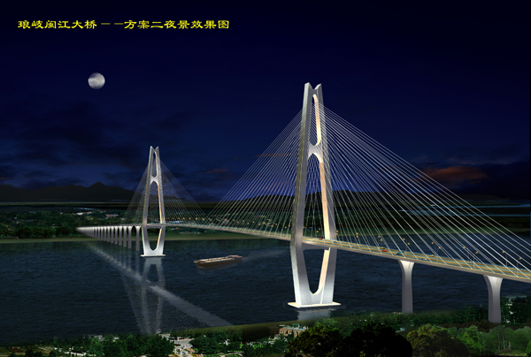 琅岐闽江大桥及接线工程项目分为琅岐闽江大桥、亭江互通立交、琅岐环岛路互通立交、亭江接线。起点位于国道104线的2300km+272m处,向西至亭江互通,向东跨越闽江接琅岐岛环岛路与通和路。工程总投资概算为21.07亿元,全长8.437公里,其中琅岐闽江大桥长2675米,主桥长1280米,主桥桥面宽28.7米,按双向四车道加紧急停车带设计,预留双向六车道。本项目主线为一级公路兼具城市I级主干道,设计车速60公里/小时;通航净高>55.1米,通航净宽>630米,通航3万吨级海轮;主桥是主跨为680米的双塔等高斜拉桥,居世界同类桥梁前10名。工程建设工期42个月。
