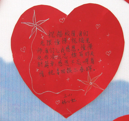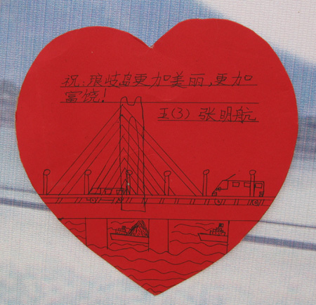 琅岐将迎来大开发大建设,这是对青少年进行热爱家乡教育的良好时机,琅岐实验小学大力开展“爱我校园,爱我家乡,爱我祖国”主题活动,校园里矗立着“祝大桥动建,贺琅岐兴旺”的大型标语;电子屏幕里滚动显示相关的标语口号;请关工委老同志作“我们的家园无限美好”国旗下讲话;制作“我爱家乡,琅岐明天更美好”图片展在校园展出;举行“祝福琅岐表爱心”张贴;和“我爱家乡”诗歌朗诵等。通过这些活动引导学生关注家乡建设,激发他们爱国爱乡的情感,激励他们从小立下凌云志,努力学习,健康成长,将来为祖国建设,为家乡建设做出贡献!