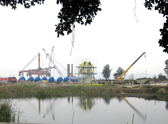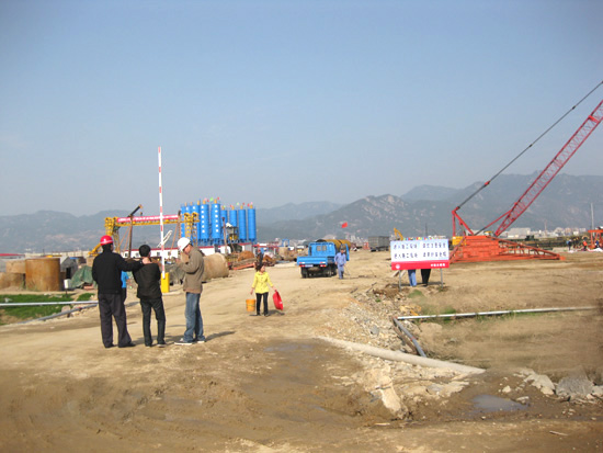 琅岐路桥建设指挥部的负责人说:“大桥开工以来,施工没有间断,各项建设工作,一直以超常规的速度进行。大桥建设的征地,得到有关村的村民的大力支持。一切正常的话,今年底,桥塔水下桩基(100多米),将浮出水面。”
