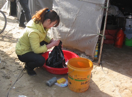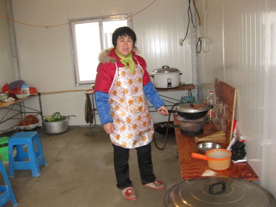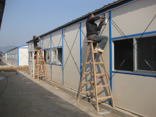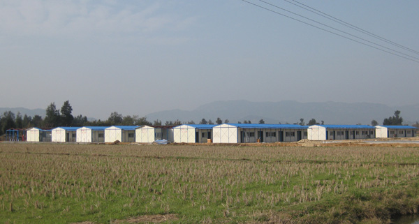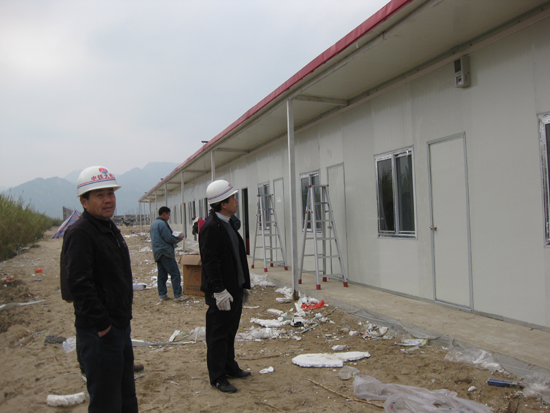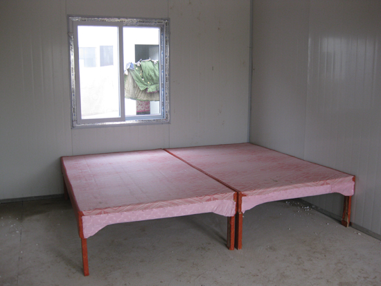 工地的一旁有两排简易房,这是水泥搅拌站工人的宿舍,每座20间,房间内按有床铺两架,一些工人和家属已经入住。