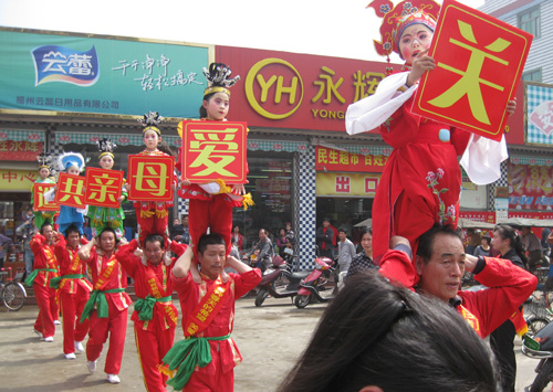 5月8日(星期天),琅岐区(镇)计生局(办)计生工作志愿者在琅岐永辉超市前广场举行“母亲节计划生育宣传”活动,向群众分发计生宣传提纲和避孕套等。为聚集人气,极具琅岐地方特色的琅岐肩头戏临场精彩表演,和现场为群众免费测试血压,进行医务咨询等,大受群众热烈欢迎。