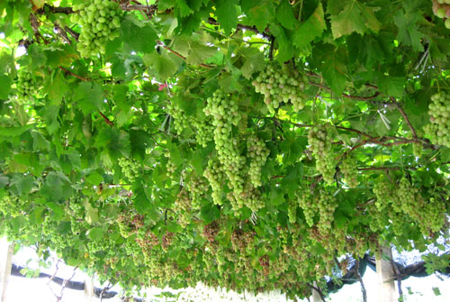 枝荣遮天叶滴翠,簇簇串串缀满棚,