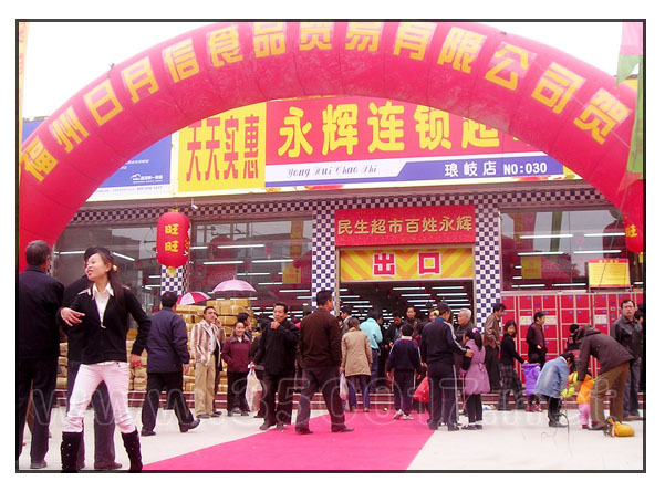 今天是2006年元旦,天气晴朗,永辉超市连锁琅岐店正式开市,由于超市位居原琅岐文化宫,这里是居民最集结的地方,一大早顾客从四面八方赶来购物,超市广场和店内人山人海,热闹非凡,忙坏了超市员工,琅岐公安民警也来维持秩序,疏导交通。(朱立仪报道)