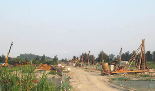 由琅岐闽江大桥琅岐侧岸上引桥已完成钻孔桩灌注54根,其中12#墩已完成全部桩基施工任务并顺利转入承台施工。这标志着琅岐闽江大桥引桥桩基施工己驶入快车道。