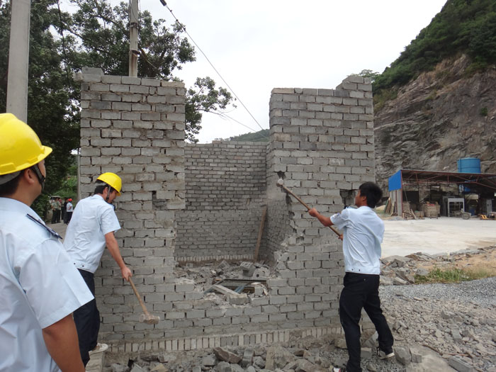 清违工作人员来到在龙台往金沙的象鼻山处,陈善亿承包的工作场所违建职工工棚处,执法人员多次劝阻无果,