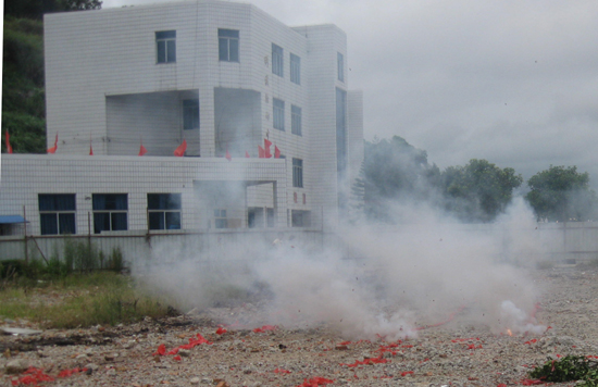 在一片鞭炮声中,新楼房建设正式开工了