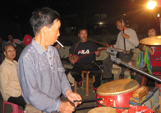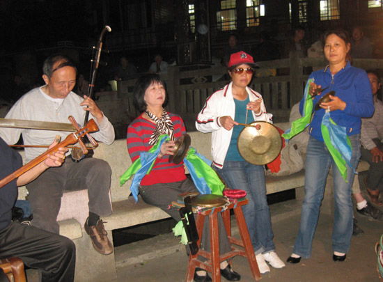 琅岐过透村村口,一到夜幕降临,锣鼓喧天,琴声悠扬,闽腔回荡,乡音缭绕,好不热闹。不少村民围坐在百年榕树下,倚身于古桥栏杆旁,兴高采烈地观赏前锋文艺队表演,使人感受到扑面而来的是乡村文化风。