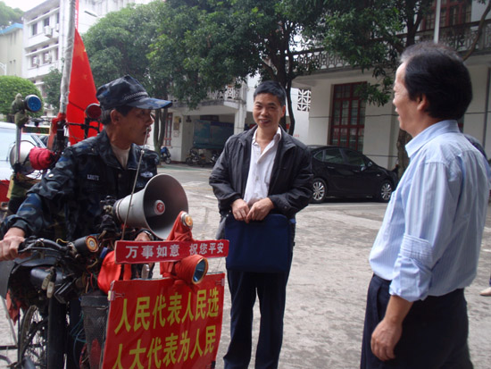 日前,马尾区人大选举办公室主任许小民等一行到我镇检查区镇人大换届选举的前期准备工作。许主任检查了劳丰、争丰、劳光、乐村等选区的一号、二号、三号公告以及给选民的一封公开信的公布情况和换届选举宣传布置工作,并听取了各选区的换届选举工作的汇报,充分肯定了我镇各选区选举前期工作的成绩,尤其对我镇聘请杨英祥同志骑自行车流动广播宣传人大换届选举的做法赞不绝口,并要求我镇后续的人大选举工作要多学习、多沟通、多摸索,换届选举工作政治性、政策性、法律性和程序性都很强,要充分发扬民主,严格依法办事,认真扎实做好每一阶段、每一环节、每个程序的工作,确保区、镇人大代表换届选举工作依法有序如期圆满完成。