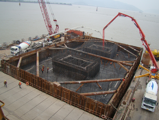 4号主塔墩第二层混凝土顺利浇筑完成