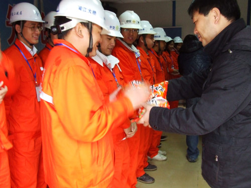 市总工会领导在听取了中交二航局项目部书记李划的琅岐闽江大桥建设情况的介绍后,首先对全体参建人员为福州市建设事业做出的贡献表示衷心的感谢,随后亲自递上了毛巾、保暖内衣以及牛奶等慰问品。在慰问过程中,他们还详细询问了目前工程进度情况,并叮嘱大家强化安全意识,文明施工,合理安排作息,注意身体健康,切实做好“两节”期间的安全工作,确保一线工人度过一个安全、喜庆、温暖的春节。