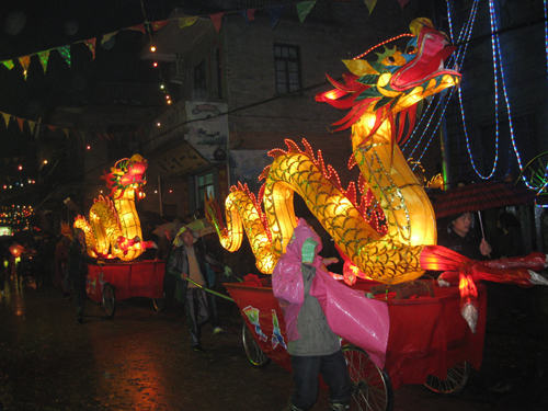 有趣的是,“迎灯”晚九时许结束,人们打扫完毕满地的鞭炮烟花纸屑,天竟然下起大雨,将路面尘土洗涤干净。