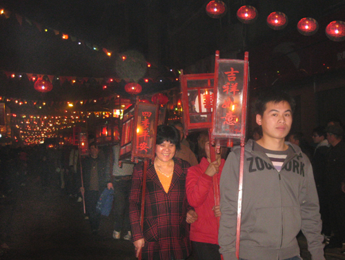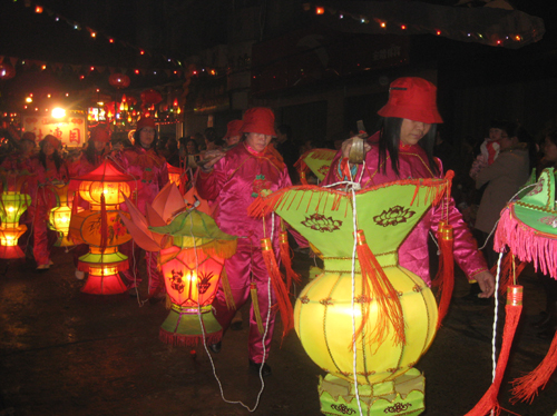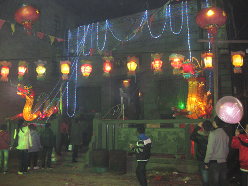 上午还是阴沉着天,不时细雨淅淅;下午却突然放晴,阳光灿烂;晚上虽没有园月,但无风无雨,是难得的游灯好天气,这真是天公作美!
