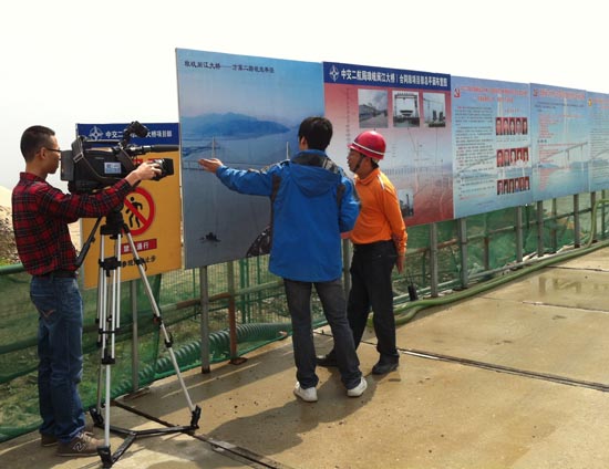 4月10上午,福州电视台新闻中心到由中交二航局承建的琅岐闽江大桥进行了实地采访。