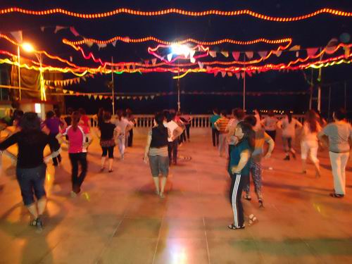 每当华灯初上的时候,公园里便乐声阵阵,人声鼎沸。跳舞的群众在流光溢彩的舞池里欢快地舞蹈;十余个青年在篮球场上奋力拼搏;几个羽毛球爱好者在羽毛球场地上来回厮杀;几位老人干脆脱了鞋袜,光着脚丫踩在鹅卵石铺就的健身步道上,一个个脸上笑开了花。