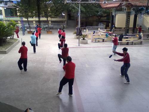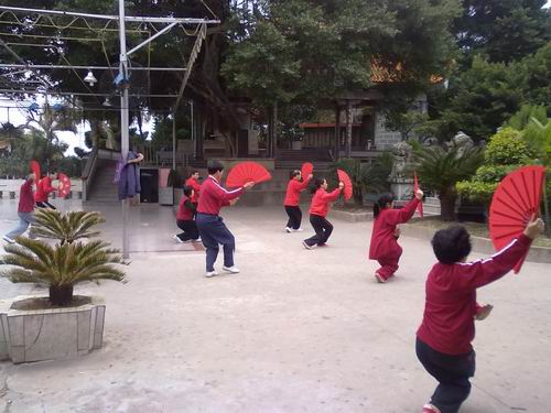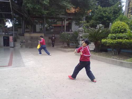 清晨,太极拳、太极剑、太极扇爱好者汇聚在公园里,互相切蹉,交流技艺。伴随着悠扬的乐曲,他们展示了舒缓轻曼的姿态,娴熟自如的动作。
