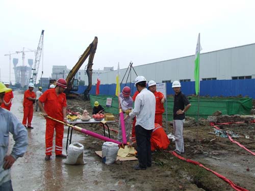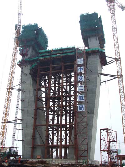 目前,3#主墩塔柱施工已完成了14节段,累计高度达到60多米,主塔下横梁施工也在紧张的进行。为了大桥建设,项目部采取积极措施,精心组织,科学统筹,不断优化施工方案,采取塔梁异步施工,在进度上赶超其他标段;在质量控制上,严格落实质量“三检制”,实现检查工作表格化;在安全管理上,开展“安全责任,重在落实”主题活动,切实做好班前教育,狠抓隐患排查、整改工作,多次举行应急事故演练,极大提高全员的安全意识。