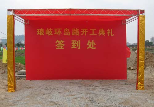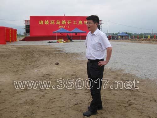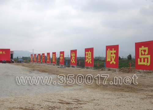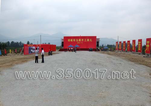 琅岐经济区明天(5月30日)上午十点将举行盛大环岛路开工典礼。开工典礼会场设在将到琅岐码头的通和路右侧(琅岐工业园区大门前)。典礼会场已经基本布置完毕,会场主席台简洁大方,“基础先行,全面开发琅岐岛”巨幅标语格外醒目;通和路两边彩旗迎风飘扬,气氛热烈。