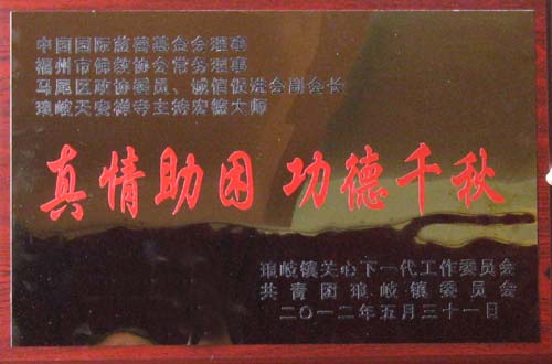 这次活动得到中国国际慈善基金会理事、福州市佛教协会常务理事、马尾区政协委员、诚信促进会副会长、琅岐天安禅寺主持宏德大师的大力支持,慷慨捐款二万元。捐赠启动仪式上琅岐镇党委副书记朱莺代表琅岐镇政府对本应法师热心慈善事业表示敬意,并赠送牌匾以示表彰。