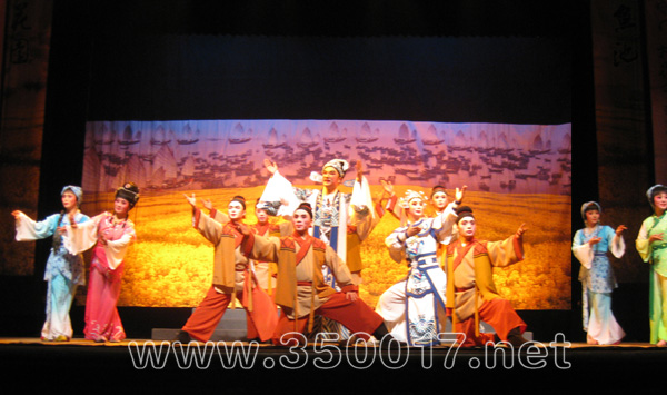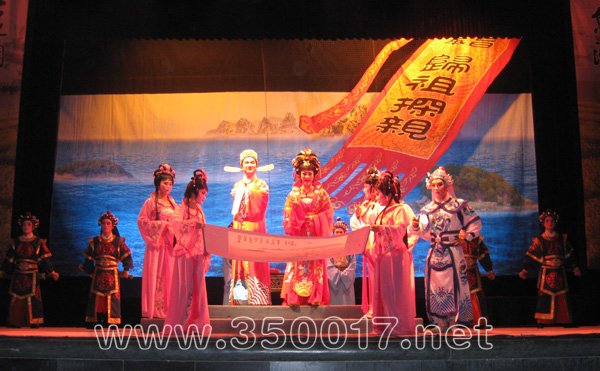 新编《龙台驸马》唱词清新流畅,曲牌丰富多彩,乡音缭绕,闽韵悠扬;舞台清新大方,正幕背景图“双龟把口,五虎守门”、“千帆竞渡、油菜花香”等景观清新活现,侧幕条幅“琅岐、凤窝、龙台”等民谣配画,体现琅岐岛风光无限,极富地方特色,令人耳目一新。