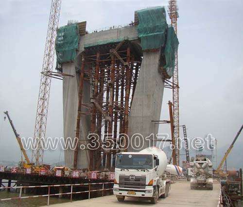 针对中塔柱钢筋和预应力密度高、绑扎困难、混凝土浇筑、震捣难度大等特点,施工单位在浇筑过程中,严把工程质量关,控制好混凝土配合比,确保混凝土浇筑的顺利进行。经过16个小时的艰苦奋战,成功浇筑混凝土686立方米。