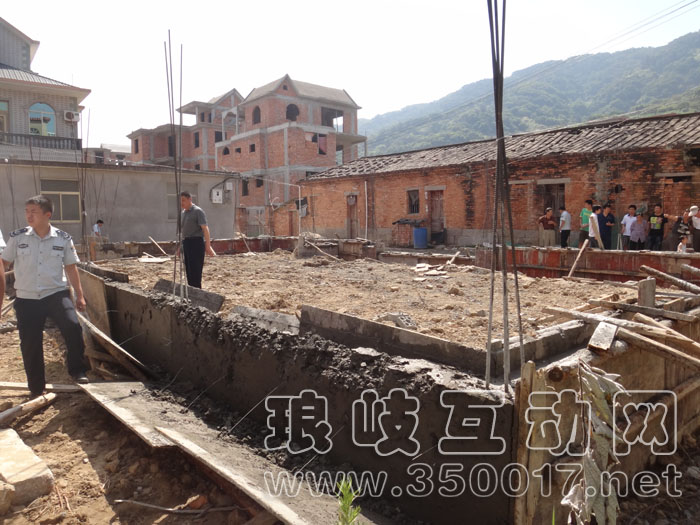 7月10日上午,清违执法人员回访违建户江典礼处,发现违建物又发生变化,确认该户利用晚间抢建,将地基浇注了水泥,执法人员强制拆除了部分模板,移除未干的水泥。