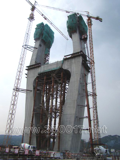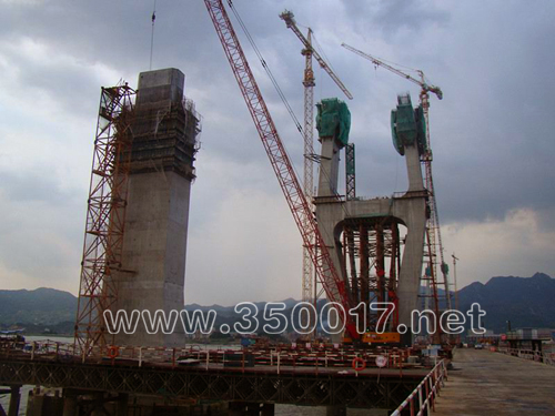 中铁大桥局琅岐闽江大桥项目部在主塔施工中运用了一系列国内最先进的施工工艺和技术,采用最先进的液压爬模系统。同时,开展“大干一百天” 的劳动竞赛,不断加快主塔施工进度,由最最初的8天一个节段不断加快至5天;从中塔柱第13节段开始,塔柱施工周期又缩短了1.5天仅用了86小时,创造出塔柱施工的新纪录。