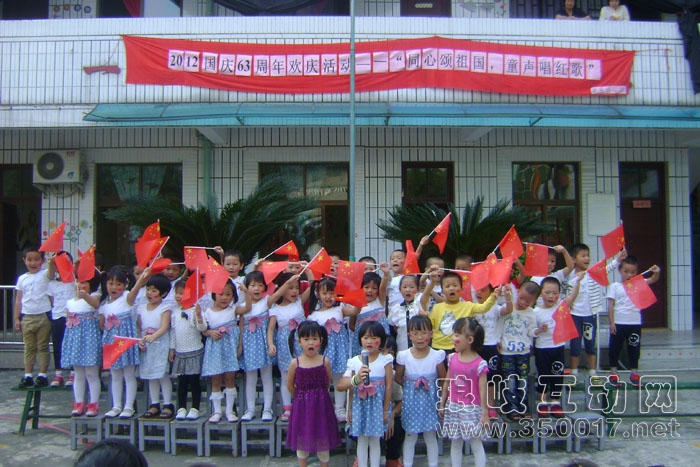 在共和国63华诞即将到来之际,孝先幼儿园于9月29日下午举办了“庆国庆——同心颂祖国,童声唱红歌活动”,本次活动在升国旗、全体师生齐唱国歌中正式开始。为深入开展爱国主义宣传教育,我园开展“班班有歌声”活动,幼儿园每个班的每个小朋友都积极参加了此次演唱活动,孩子们演唱了《大中国》、《红星闪闪》、《歌唱祖国》、《小蜡笔》、《哇哈哈》等经典歌曲,娃娃班小朋友也不甘示弱,送上《小手歌》、《我上幼儿园》儿歌,孩子们用稚嫩的的歌声、纯真的童心演绎着红歌。一张张神采飞扬的脸庞,显示了孝先幼儿园孩子的奕奕风采,一曲曲热情豪迈、雄壮有力的爱国歌曲,表达着对祖国妈妈的祝福与感恩!我们为祖国的发展、强大而自豪!