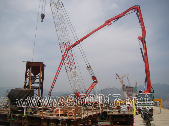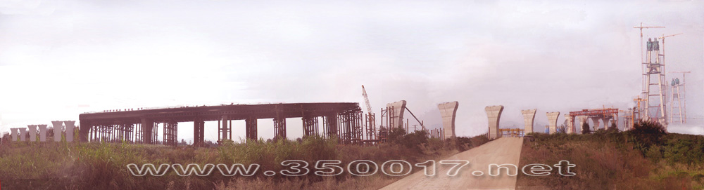 人们惊喜地看到,在琅岐侧全长3公里多的施工线上,800米长的主栈桥上10多台塔吊、履带吊、车轮吊机臂杆高耸云天,运转频繁,不间断为塔柱、水上引桥现浇梁、墩身吊装钢筋或模板等材料;岸上引桥施工立体交叉穿梭地进行中,打钢管桩锤发出震耳欲聋的响声;互通立交匝道上,各类机械马达轰鸣,挖机、悬挖机、冲击钻机机声隆隆,奏响美妙的交响曲;数10台平板运输车、装载机车、搅拌车来回穿梭,天泵、地泵不间断的向桩基、沉台、墩身输送着混凝土,似铁流在涌动。