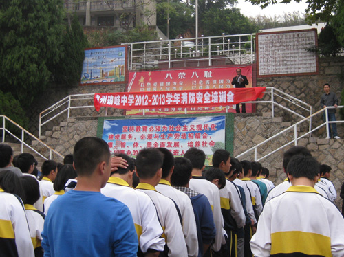 为了让广大师生深入了解消防逃生常识,切实树立起消防安全意识,日前,琅岐中学组织全校师生再次进行了防火逃生演练活动。当警报声发出后,全校学生在教师的组织下,按照紧急疏散路线,快速有序地从教学楼开始撤离。3分钟后,全校师生便全部安全撤离到学校操场,无一人缺席。达到了预期效果,演习取得了圆满成功。