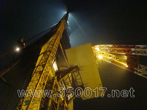 1125下午,随着一阵清亮的哨音,闽江水面上一台苏航工8381200吨级大型水上浮吊伸出