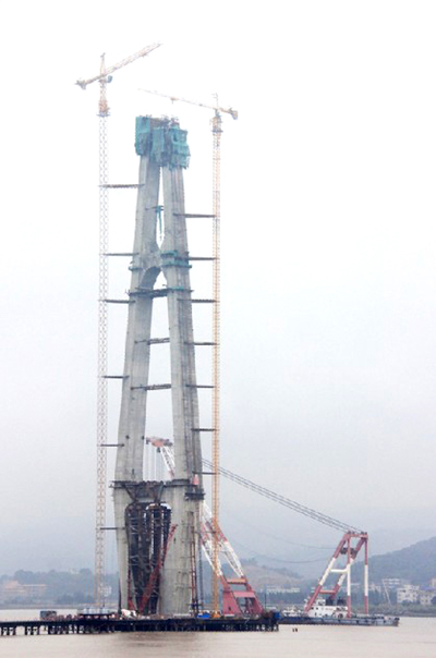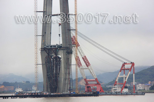 吊装到4号主塔墩下横梁上方预定的位置上(位于桥上无索区),至此,琅岐闽江大桥主战场上首段钢