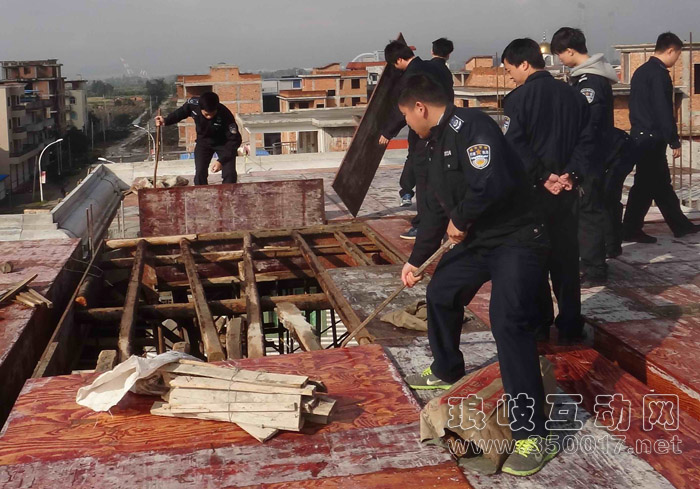 11月29日上午,清违执法人员巡查回访上岐管理区时,发现光明村村民朱国铿利用雨天、夜间执法人员视线模糊时抢建高层,清违执法人员强制拆除抢建的模板,共计60平方米,剪断向上延升的钢筋,共计80根。