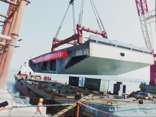 ——琅岐闽江大桥无索区钢箱梁吊装顺利完成