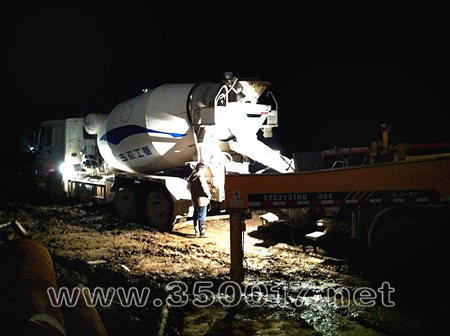 琅岐环岛路互通立交最后一根桩基浇筑时的施工场景